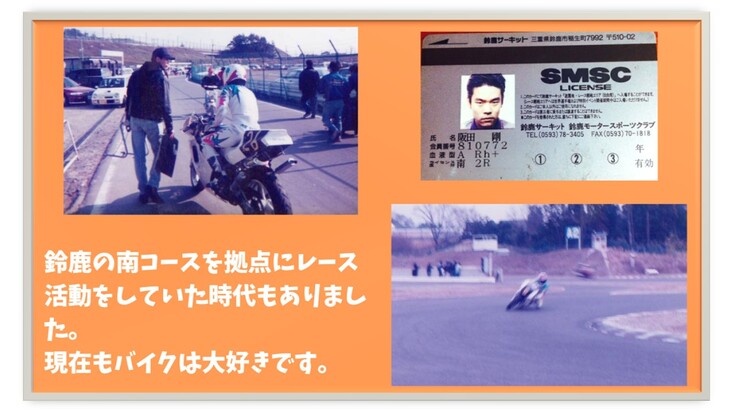 分野問わず、何事に関しても観戦や観覧よりも、自分が誰よりも上手くなることにやりがいを感じます。特にバイクに関してはスピードに対する憧れが強く、リスクに対する頭のネジがちょっと緩んでいます。現在はバイクに跨ることを控えていますが、本当はすぐにでもサーキット走行をしたいと思っています。
