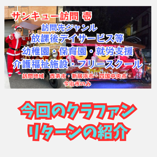 今年のクリスマス時期にサンタに扮した私が、トゥクトゥク乗ってご指定頂いた施設様や企業様に訪問するサービスをリターンにしています。