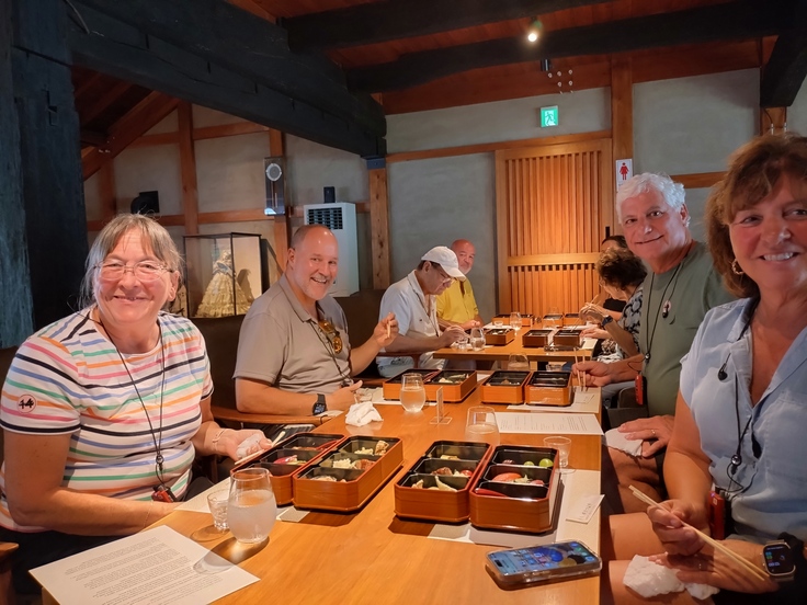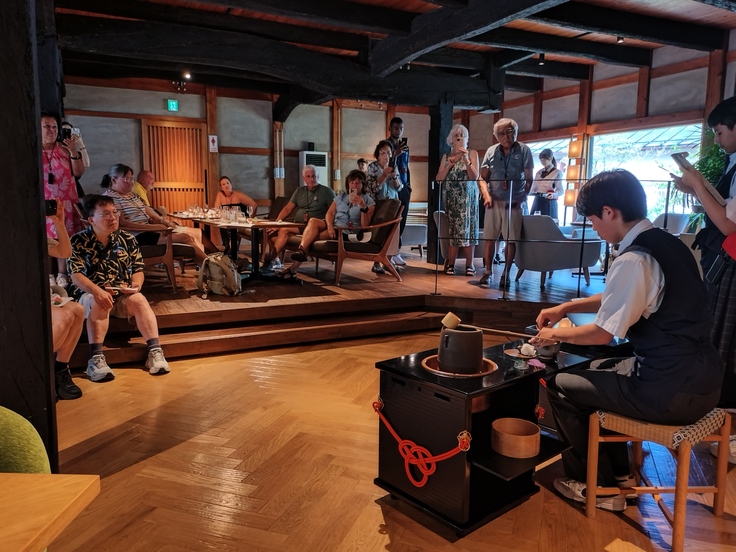 食事をされる組では地元の料亭本さつまやさんのお弁当を楽しんで頂き、矢部高校生によるお茶のお点前が披露されました。お酒もガバガバ飲んで頂き、お土産もいっぱい買って頂きました。皆さん本当に喜んで頂きお帰りには素晴らしかったと涙をながす仕草をされて帰られる方もおられました。