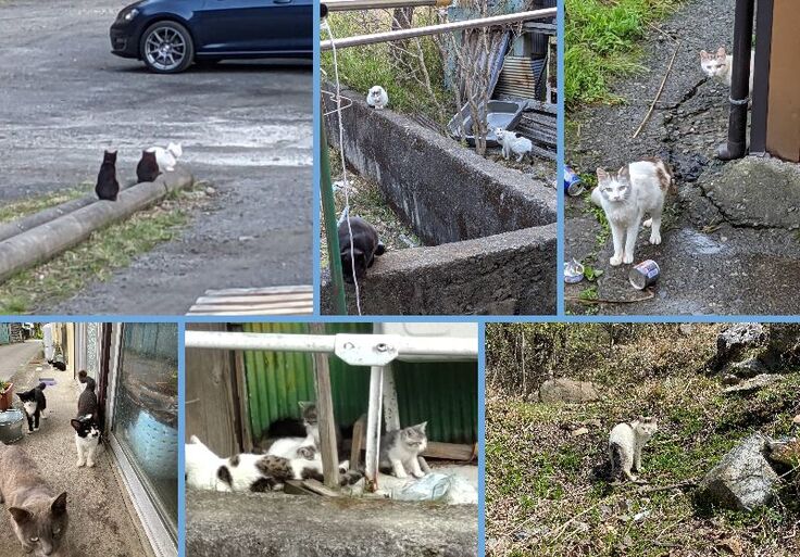 現地調査の結果、地元の方が餌やりをしている、約10か所の場所で100匹以上の野良猫を確認をしました。確認できてないだけで、まだまだいると思われます。