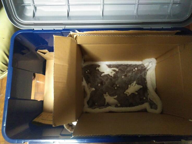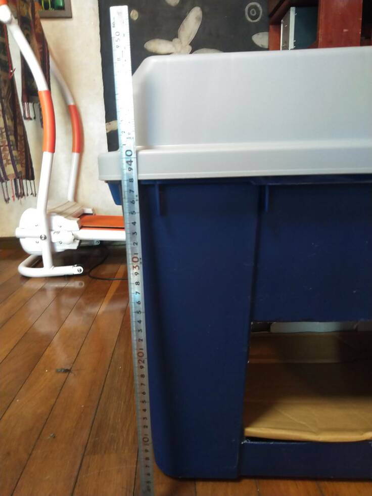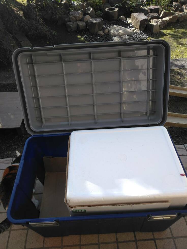 このように、隙間で暖を取る猫のために、とりあえず、足尾の厳しい冬で暖をとる小屋を作成させていただきました。