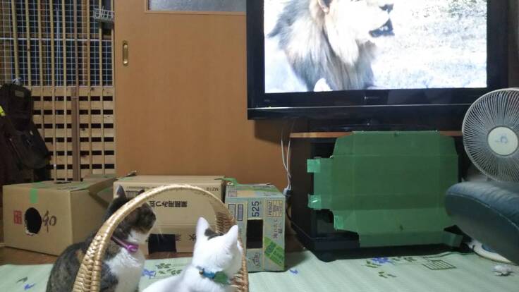 2匹でテレビのライオンに釘付け♪