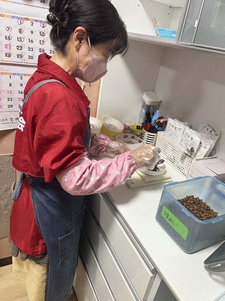 朝5時・8時/お昼14時/夜19時半の1日4回に分けて行っています。
