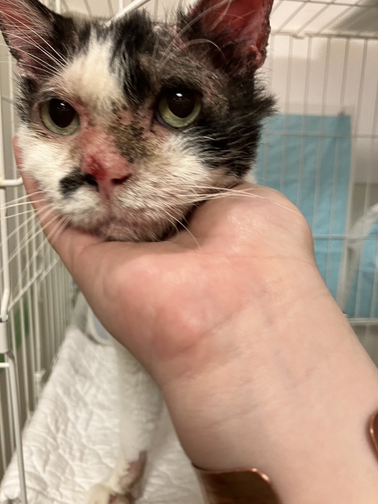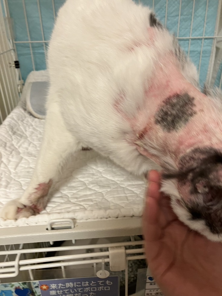 体の全身に うじ虫が湧き、血尿が出ているボロボロの状態で保護されて来たにゃんこがいました。