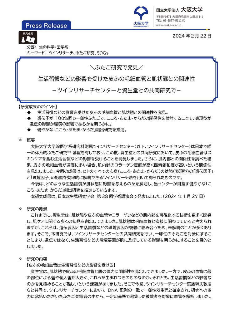 企業様との共同研究についてプレスリリースを行いました