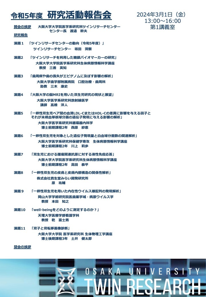 ふたご研究基盤の存続を支援| 1万円コース