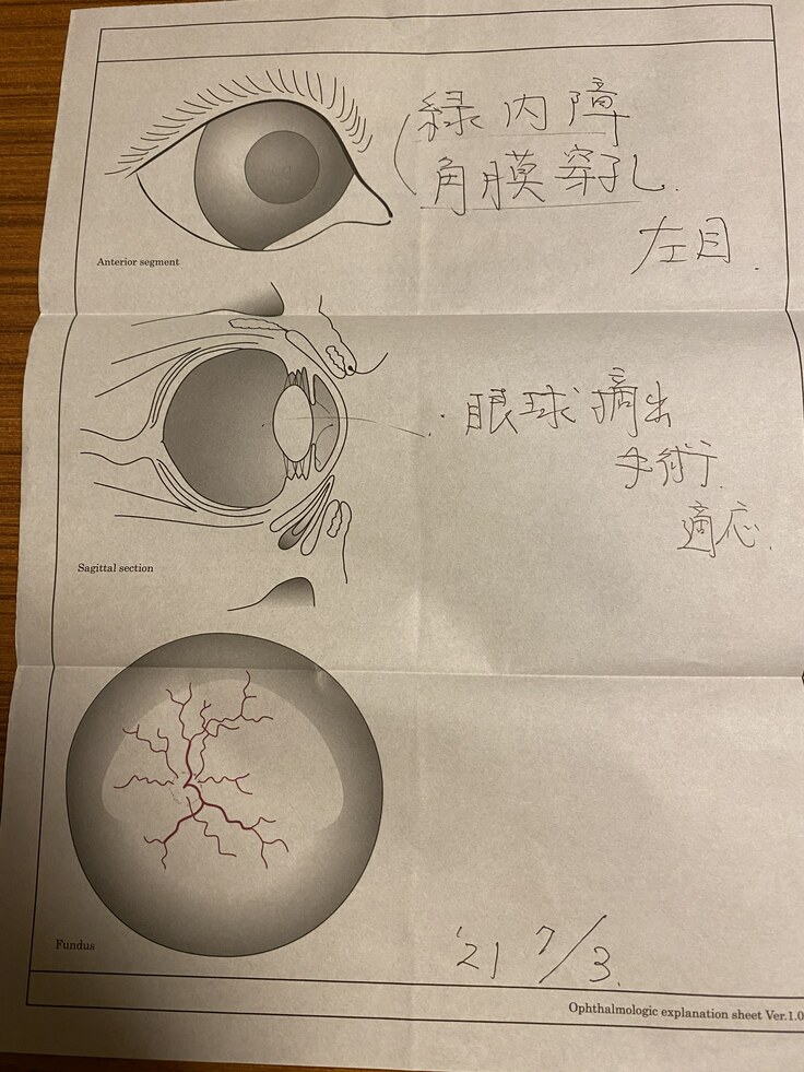 それまでは、眼の傷から感染症になることで、一番怖い敗血症にならないように引き続き気を付けて、体力を付けていくこと、経過観察で週1回の受診をご指示いただきました。