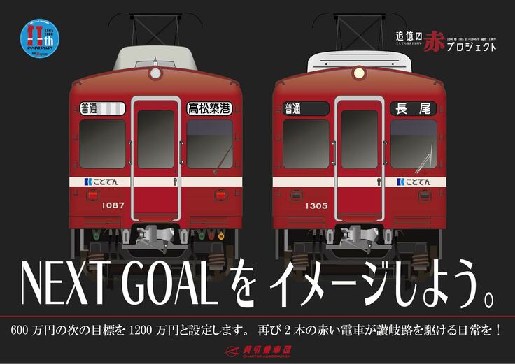 1200万円を目標とし、1087編成を赤い電車にラッピングすることを目標としたします。