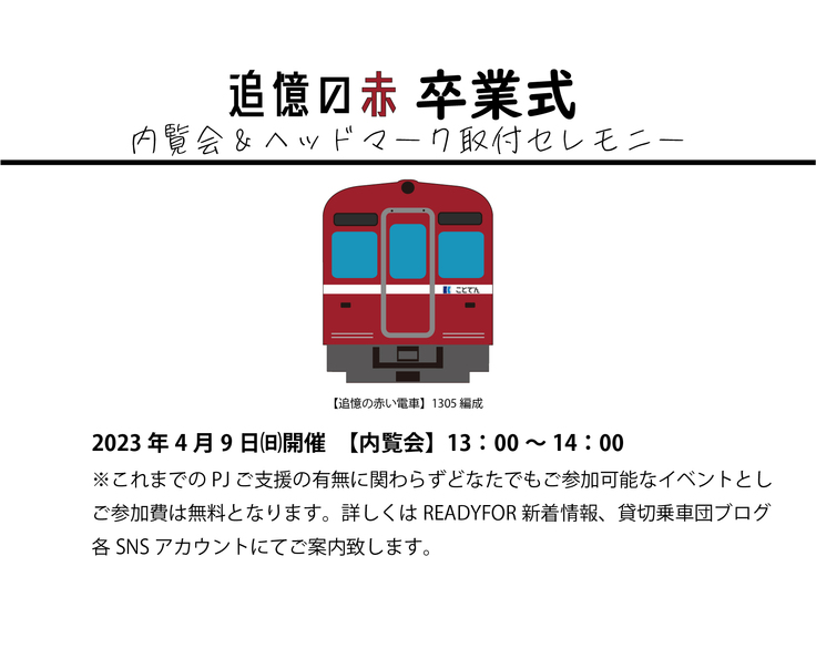 追憶の赤い電車完成報告書に感謝のメッセージを添えて