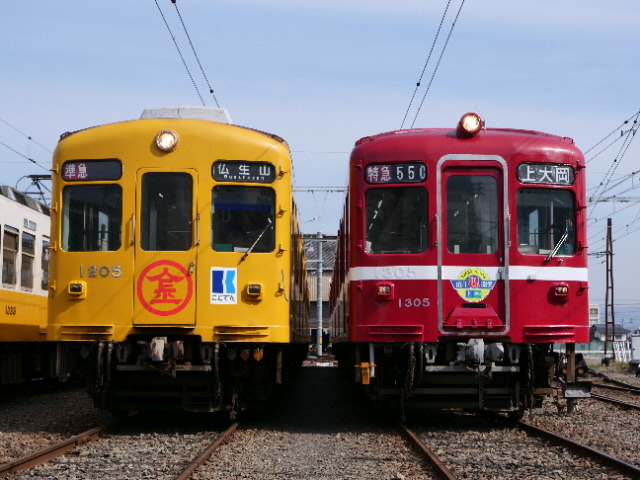 還暦の赤い電車お披露目会以来となる赤黄緑の1000形3色並び。