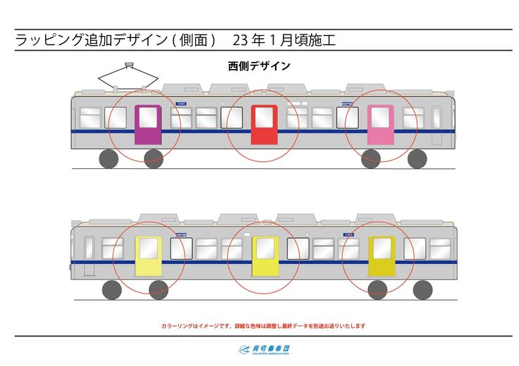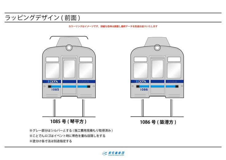 貸切乗車団が高松琴平電気鉄道にて本文で示したデザインのラッピング車両を製作する