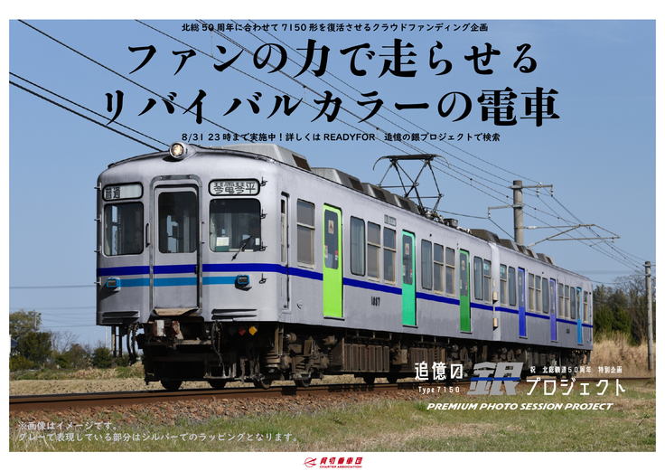 約8年、たったの16両と希少なこの塗装を、現在でも同形式を運行している香川県のことでんで全面広告としてのフルラッピングにより再現したいと思います。