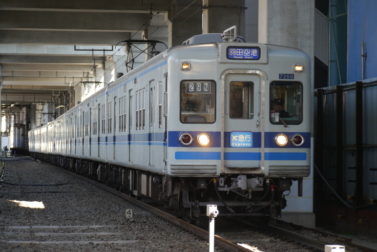 ▲京急蒲田付近の高架化工事区間を行く 29N運用 エアポート急行・羽田空港ゆき