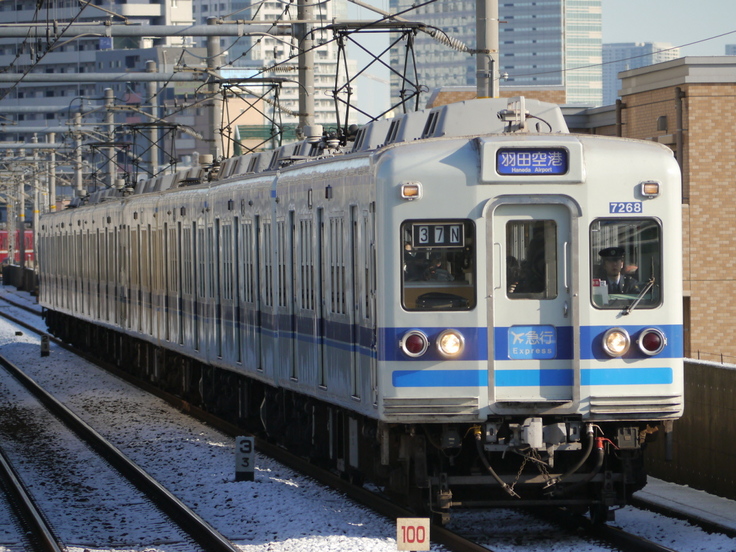 ▲小雪の舞った翌朝、青物横丁にて 37N運用 エアポート急行・羽田空港ゆき