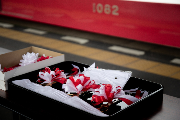 ▲営業運転に就く前に行われた還暦の赤い電車出発式