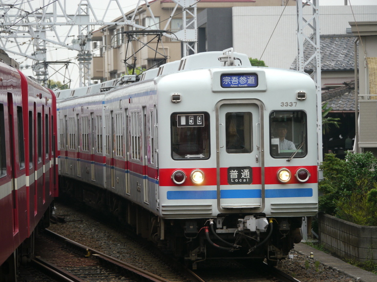 ▲北総線へと向かう京急車に被られてしまった宗吾参道行きの3300形