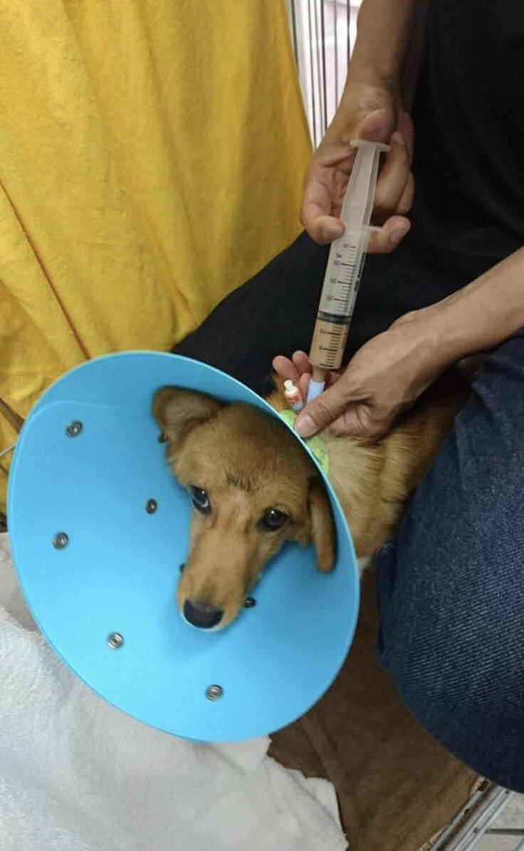 気管に炎症がある子を保護し、動物病院にて手術を依頼。