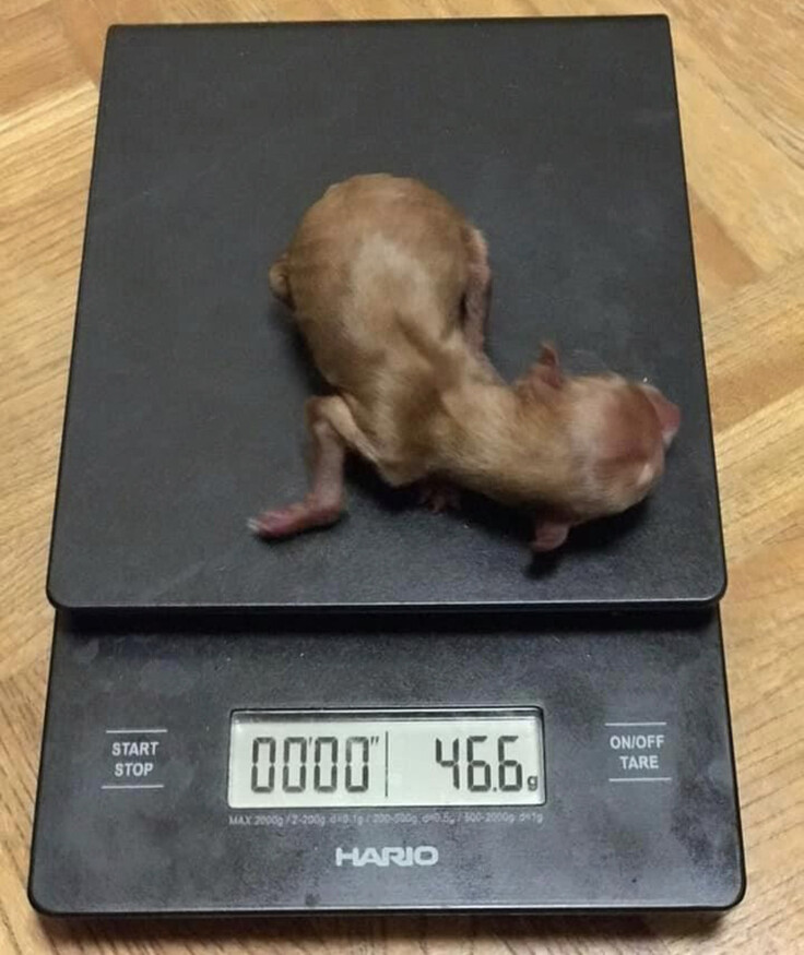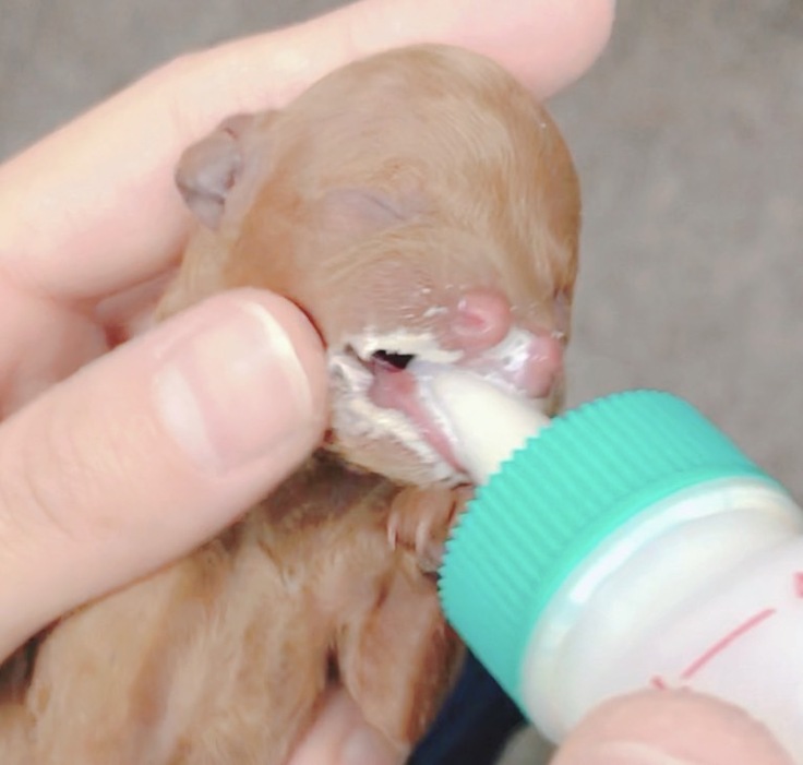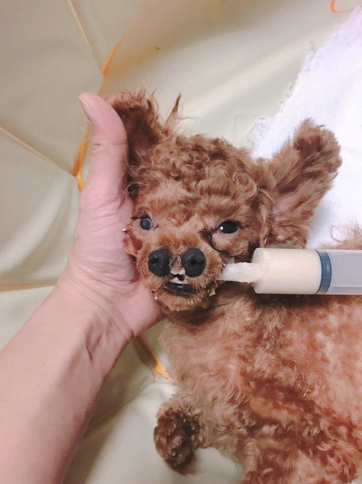 人工ミルクを3時間おきに与え、毎日4時間睡眠の状態でしたが、うーちゃんのため愛情を込めて育てました。(右写真)