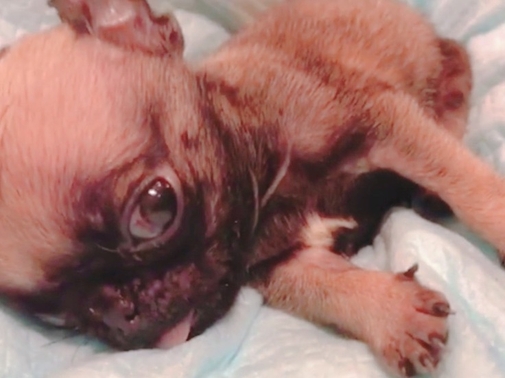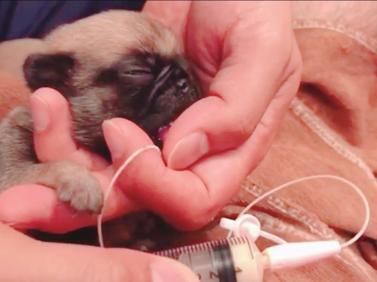 生まれつき脳に水がたまる水頭症のパグちゃん。
