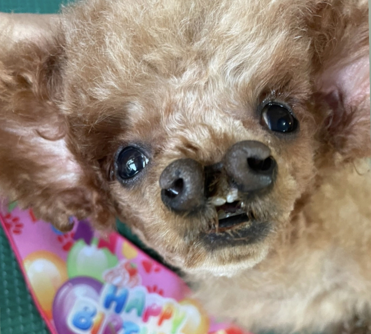 お鼻が二つあり、脳に麻痺があるため、立つことも、お水や食事を取ることもできませんでした。