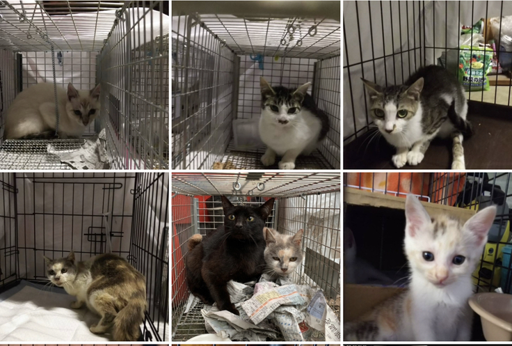 そして現在、各シェルター(預かりさんのお家)に計猫23匹。少し成長した若い猫から成猫まで、白に黒、三毛に茶トラ・キジトラ、サビなど雑種がほとんどです。その他に犬1匹(ミニチュアダックスフンド)もいます。
