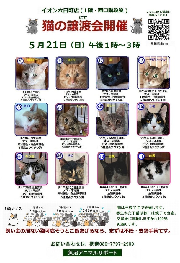 譲渡会チラシ郵送します
