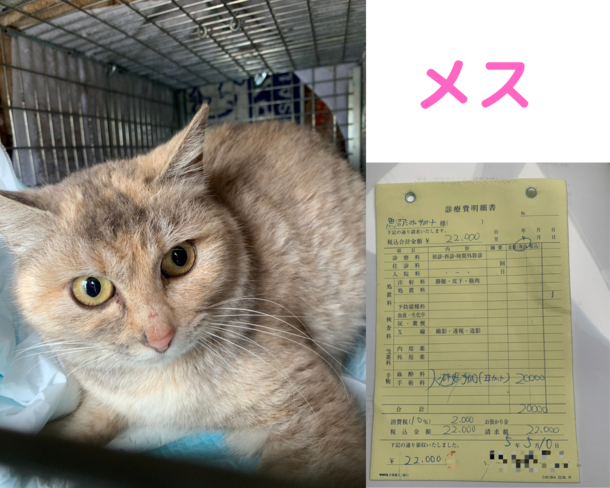 避妊手術と耳カット(さくら猫ともいい、避妊去勢手術済みのしるし)をして、リリースしました。