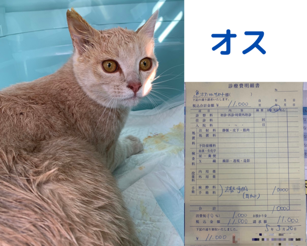 去勢手術と耳カット(さくら猫ともいい、避妊去勢手術済みのしるし)をして、リリースしました。