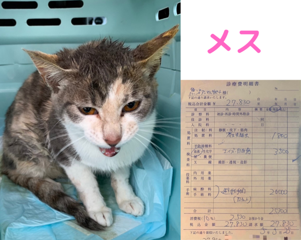 避妊手術と耳カット(さくら猫ともいい、避妊去勢手術済みのしるし)をして、リリースしました。