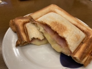 写真は試作中のハムチーズサンド