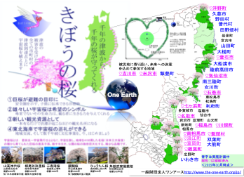 宇宙を旅した名桜の直系子孫「宇宙桜」(※)を東日本大震災の津波到達地点上に植え、千年風化しない避難の目印として、この星の子孫に残す壮大な事業「希望の桜事業」に取り組んでいます。