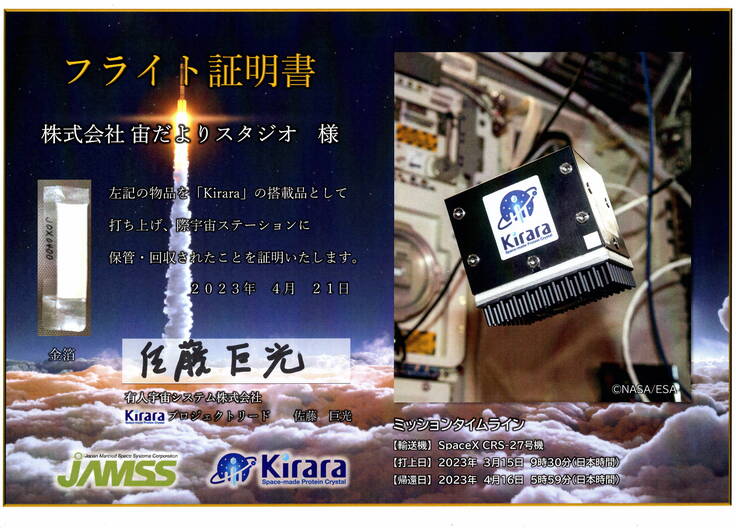 「そもそも、金を宇宙に飛ばすことが可能なのか」の疑問に、一般財団法人ワンアースさんと有人宇宙システム株式会社(以下:JAMSS)さんとの検討努力が2021年5月に始まり「可能」との答えを得たのが2021年8月でした。