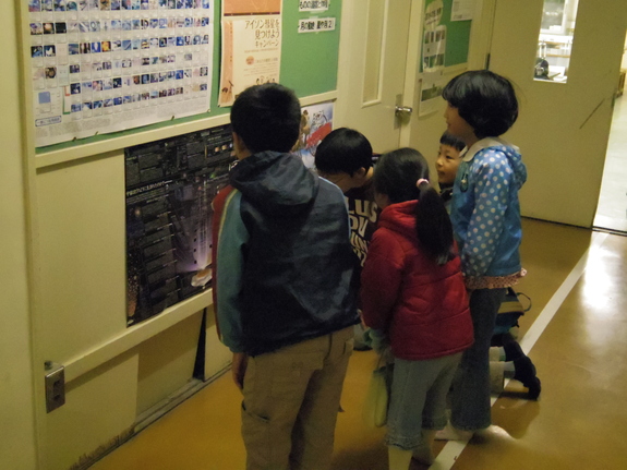 写真は、その中の小学校で宇宙図を楽しんでもらっている様子です。
