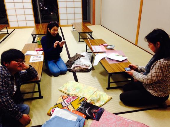 今夜は、衣装について話し合いました。役柄にあったデザインを決めていきます。明るい色合いがいいね、いや神社本殿は、非常にカラフルなので落ち着いた色合いの方が返って映えるよ・・・などなど。