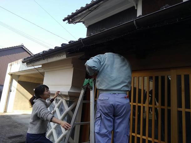 11月の終わりに、SNSで呼びかけ集まっていただいた地元の方々と共に、イルミネーションを取り付け。