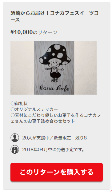 今回このプロジェクトのリターンでは10000円のコースにこのCona-Cafeさんのスイーツも入れさせていただいています。