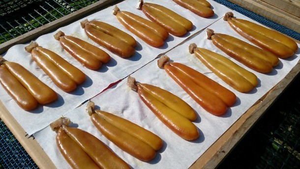 高級珍味のからすみ。冬場になると、浜辺で天日干し風景が見られるこのからすみ。これをフレーク状にして、料理に使いやすくした【からすみフレーク】