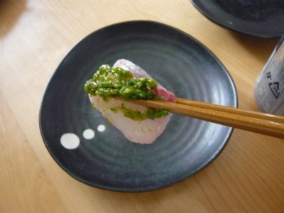 今時期に食べたくなるのが、”ぬた”。葉にんにくをすりつぶして味噌などと混ぜたタレで、高知県民なら知らない人はいないはず。ブリやウツボのタタキなどにも相性抜群です。