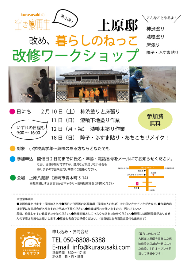 塗り残しの壁だったり、建具の修繕、床張りなど、宿泊施設オープンに向けての作業を進めていきます。