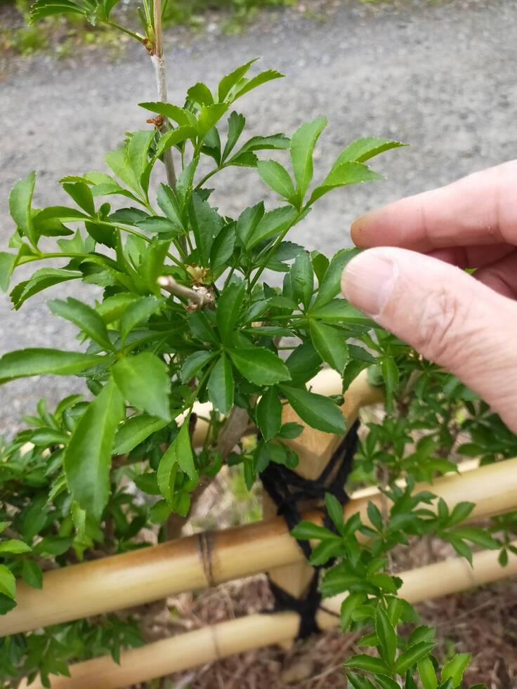 5月、うこぎの垣根に新芽が緑眩しい頃になりました!!
