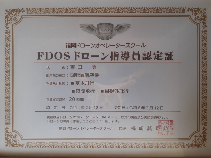 うきはドローンオペレータースクール並びにうきはドローンスキルアップスクールを運営いたしますうきはドローンサービス代表取締役兼インストラクターの吉田貢(ヨシダミツグ)と申します。