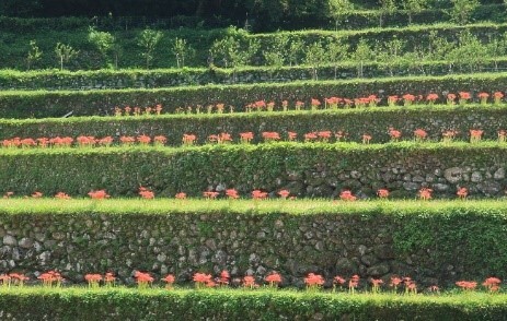 今回、ハーブを植栽する妹川地区は、日田市に隣接する浮羽町の中でも山間部にあり、人口約380人余りの過疎化の一途にある地域です。