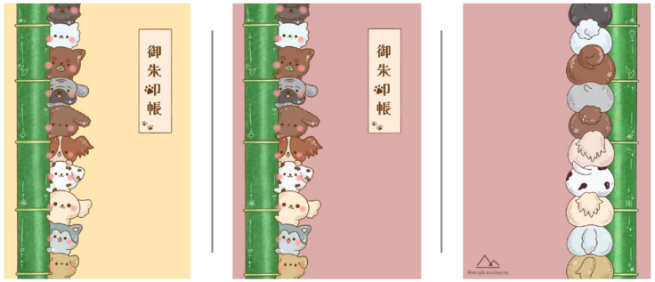御朱印帳のデザインは京都の美術大学の生徒さんと一緒に作り、嵐山の竹とワンちゃんが可愛い一冊です🐶