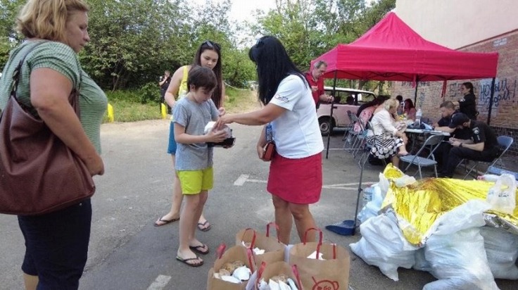 8日のキーウへの大規模攻撃は、住宅地にも大きな被害を与えました。建物の一部が倒壊して11人が犠牲となったシェフチェンスキー地区の集合住宅では、自宅に住めなくなって避難している人々を対象に、温かい食事の提供を継続しました。この日は、準備した20食があっという間になくなり、ニーズの高さがうかがえました。