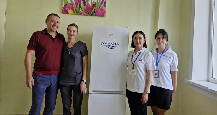 被害にあった小児患者の受け入れ病院に冷蔵庫とボイラーを設置