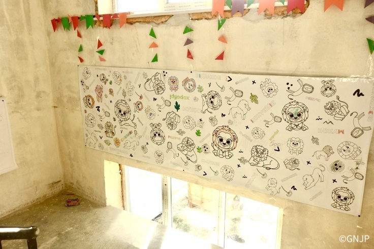 施設の壁には子どもたちがお絵かきできるような工夫が