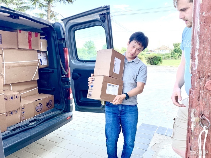 ウクライナの医療施設に医薬品を届けるFight for Freedomのメンバー