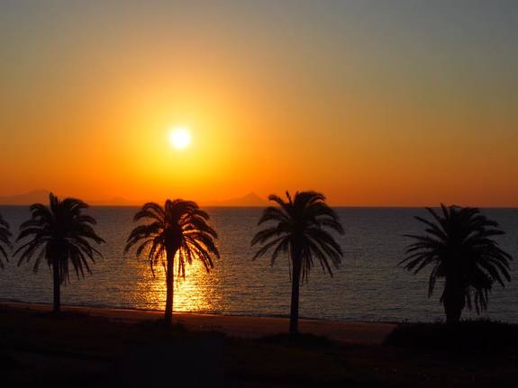 ~海岸から見た朝陽~