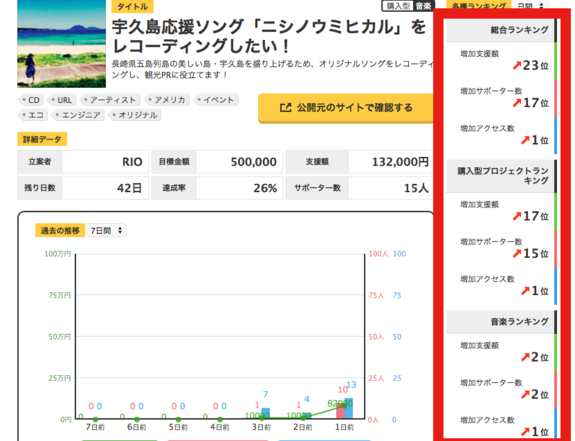 また音楽では増加サポーター数2位、増加支援額2位となり、