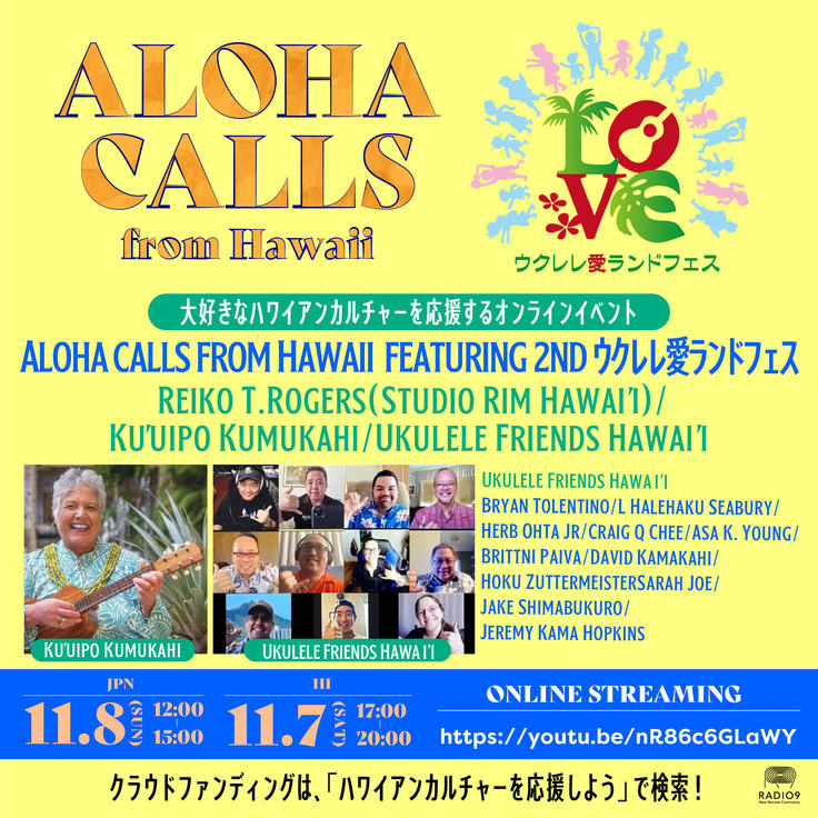 また昨年から「ウクレレ愛ランドフェス」を開催し、日本のウクレレスクールを繋ぎ、心をひとつにするイベントを手がけてきました。今年の11月8日に放送した「Aloha calls from hawaii featuring 2ndウクレレ愛ランドフェス」は第2回ウクレレ愛ランドフェスにあたるコラボ企画で、オンラインながらもハワイと日本がグッと近づけたイベントであったと思っております。(オンラインだからこそあの豪華メンバーが出ていただけたかなと!)